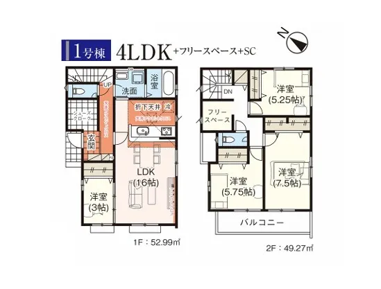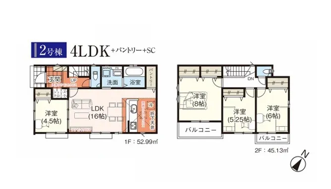 建 物 面 積 | 1号棟:102.26㎡(39.34坪) 2号棟:98.12㎡(29.68坪) 3号棟:93.15㎡(28.17坪) 4号棟:101.43㎡(30.68坪) 5号棟:101.02㎡(28.17坪) |